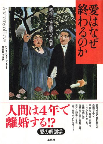 | 本の内容: | 自然人類学の研究者である著者が、アメリカで「離婚について奇妙 なパターン」があると気づき、分化の違う国でも同じパターンがあ るか、調査研究し、 「分化の違う国でも、同様なパターンを見つけ、さらに、不倫デー タからも類似性がある」 などに気づき、それらから、一般的な人類のセックスや家庭生活の 進化についてまとめた本です。 この本によると、 「世界の人々の離婚のピークは4年目で、離婚す確率が高い」 と統計が出ているということで、その理由などを掘り下げて 書いてあります。 ちなみに、そのひとつの理由としては、子どもが産まれ育て、 その子どもが乳離れていく期間が4年目で、ひとまず、親の 役割が一段落するから、ということもあるらしいです。 また、なぜ、男女ともに貞節が守れないかというと、 「長い進化の歴史のなかで、ほとんどオスは逢い引きをかさねて 遺伝子をばらまき、メスは資源獲得のためにふたつの戦略的 選択肢を発展させてきたということだ。 ある女性はひとりの男に比較的貞節をつくすことで、彼が提供 する便宜をフルに利用し、べつの女性の多くの男とひそかに 性的関係をもつことで、それぞれから便宜を提供させてきた。 この筋書きは、男は本質的にプレイボーイで、女は聖母か 娼婦だという一般的な見方にも合致する」 というような進化からの筋書きがみえるそうです。 これからの男女の愛について、女性が働きに出るようになり、 子どもの数が減り、離婚と再婚が多くなっていくだろうと、 予測しています。 学術的データ分析や文献からの引用が、多いので、 このような本を読み慣れていない方には、読みにくく、 分かりづらいところがあるように思いますが、 かなり興味深い本です。 |